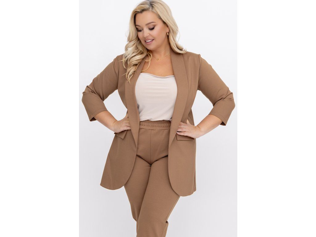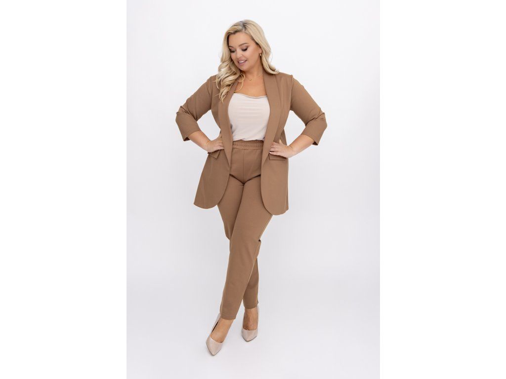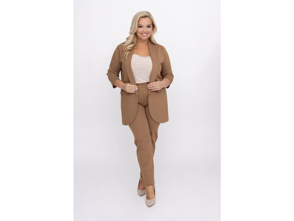 Elegantní dámský kostým v teplém béžovo-karamelovém tónu, který spojuje pohodlí, styl a ženskou eleganci. Ideální do práce i na stylové denní nošení.