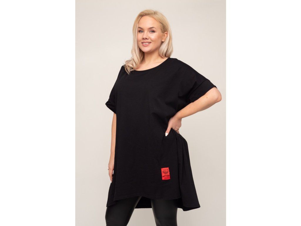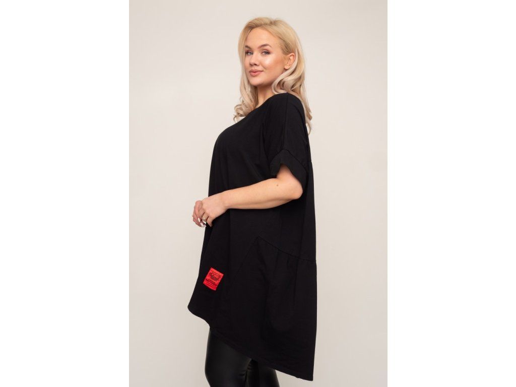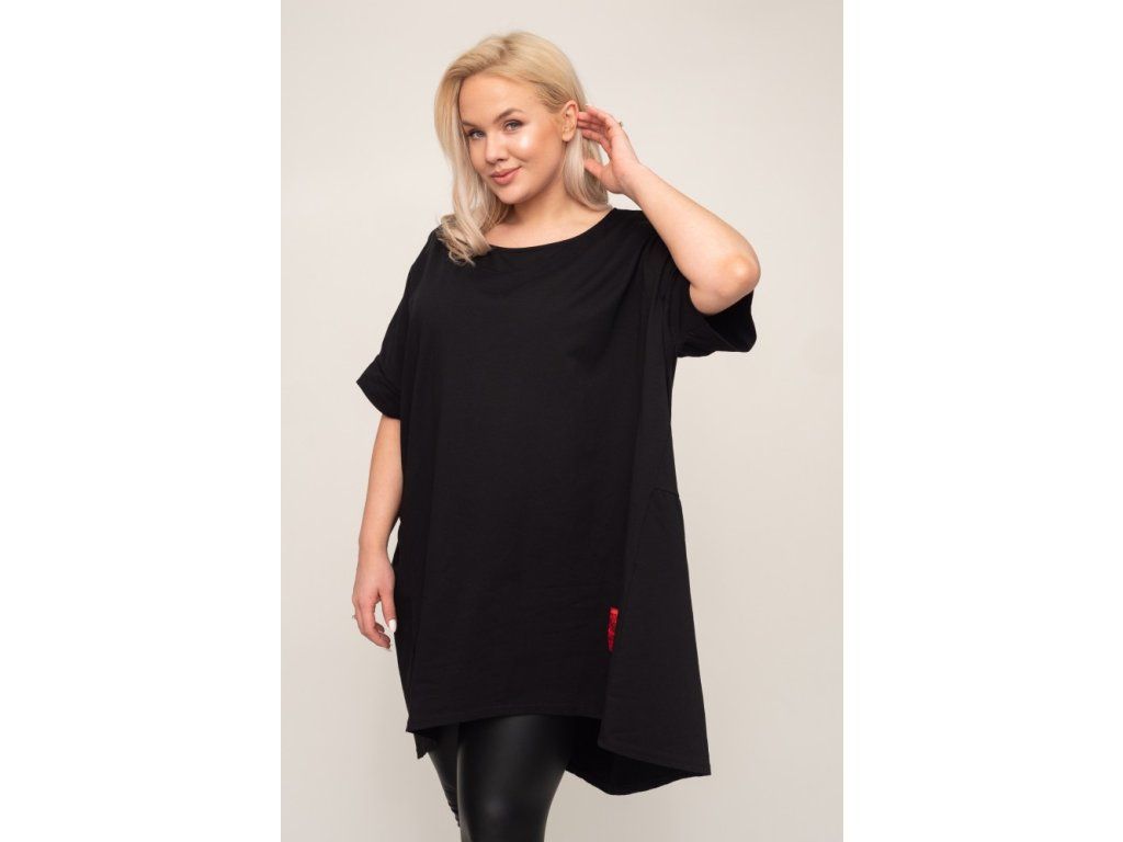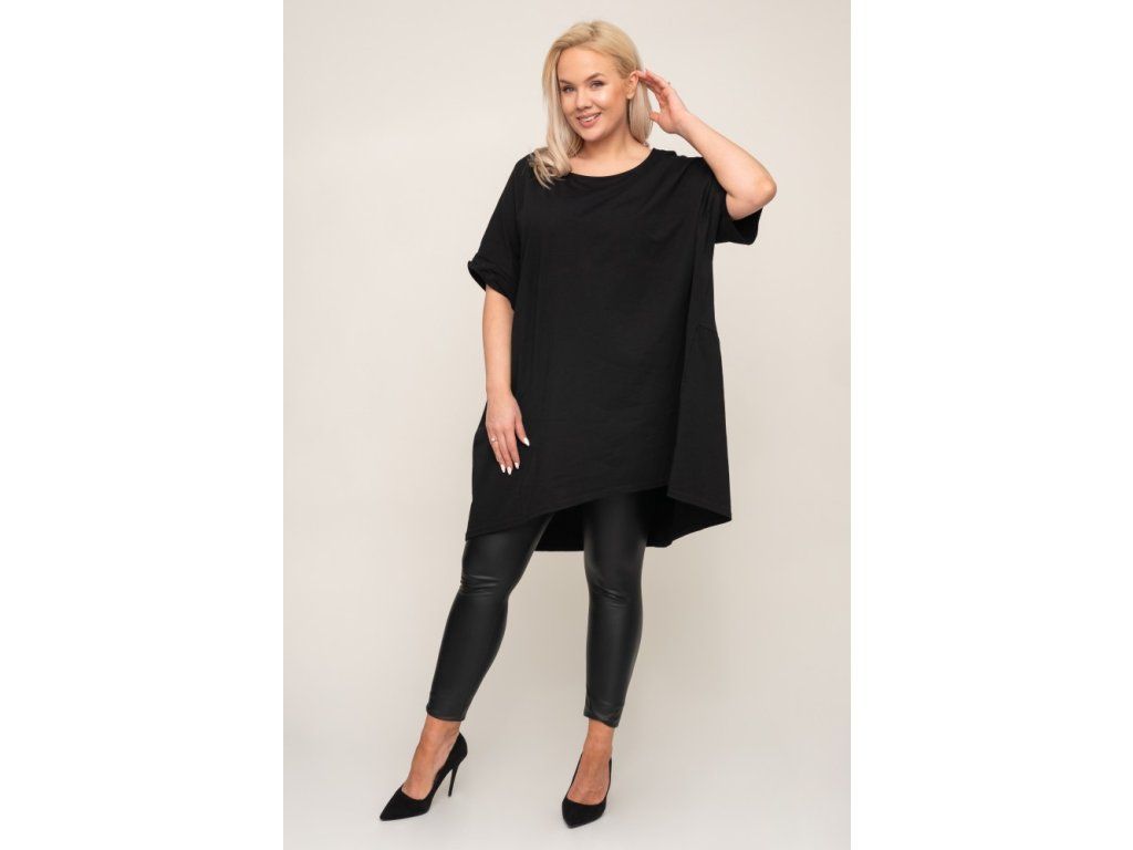 Stylová černá tunika s volným střihem, která nabízí maximální pohodlí a moderní vzhled. Ideální k legínám i úzkým kalhotám.