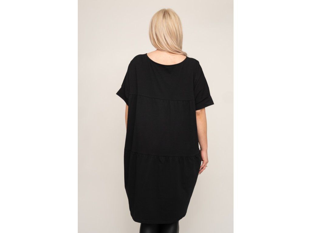 Tato černá tunika je dokonalým kouskem pro ženy, které chtějí spojit pohodlí s jednoduchou elegancí. Volný, vzdušný střih krásně padne různým typům postavy a zajišťuje maximální komfort po celý den.