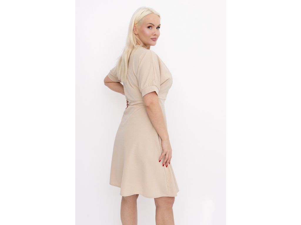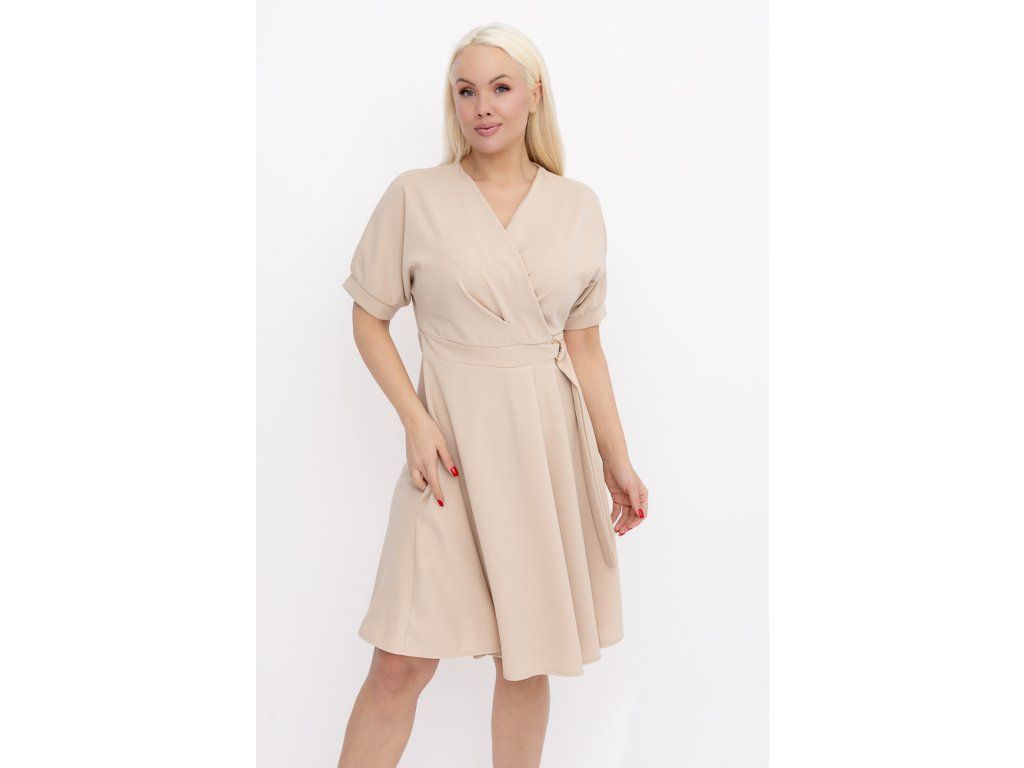 Střih šatů je navržen tak, aby lichotil postavě – jemně zvýrazní pas a zároveň působí velmi přirozeně a uvolněně. Béžová barva je univerzální a snadno kombinovatelná, takže šaty využijete jak do práce, tak na setkání, večeři nebo speciální příležitosti.